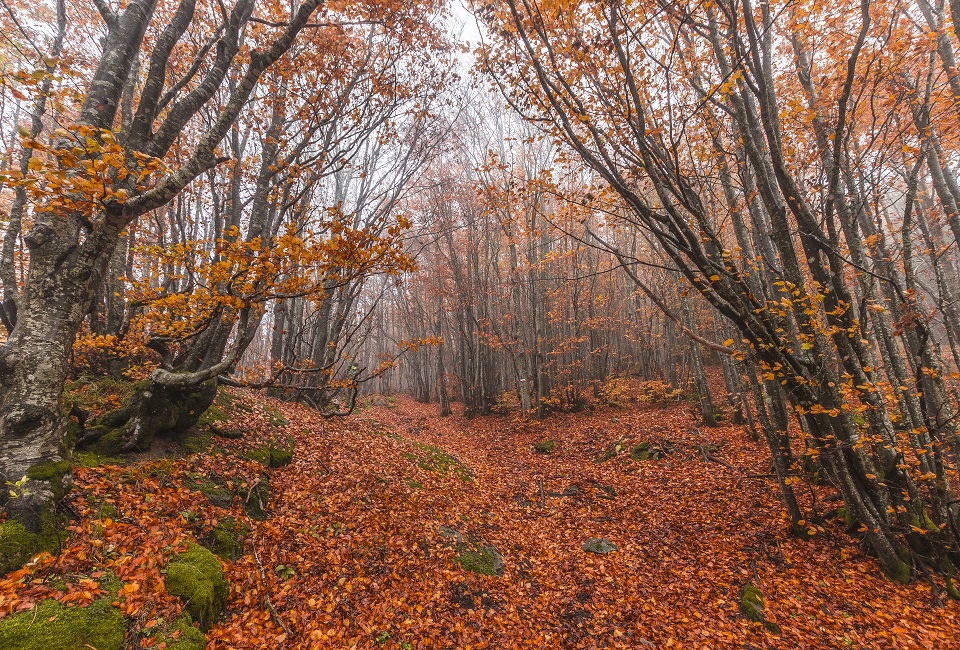 Se si vuole osservare il foliage, nel Parco della Majella non c’è che l’imbarazzo della scelta. Qualche esempio? La foresta di Lama Bianca, a pochi chilometri da Sant´Eufemia a Maiella (PE), è il luogo ideale per godere appieno delle suggestioni dell’autunno: qui i faggi svettano verso l’alto e creano un tetto colorato sotto il quale rimanere in silenzio e ascoltare i suoni del bosco. Il Bosco di Sant´Antonio nei pressi di Pescocostanzo (AQ) è una foresta con faggi monumentali dalle forme imponenti che si tingono di calde pennellate con l’arrivo dell’autunno. I faggi hanno raggiunto qui una veneranda età e acquisito la tipica forma a candelabro. Pianagrande è uno degli affacci più belli del Parco Nazionale della Majella, a Caramanico Terme (PE). Per salire fin quassù si possono percorrere sentieri panoramici che permettono di ammirare il Morrone, il Gran Sasso e le vallate circostanti osservando tutte le variazioni di colore che cambiano in base alla quota della vegetazione.