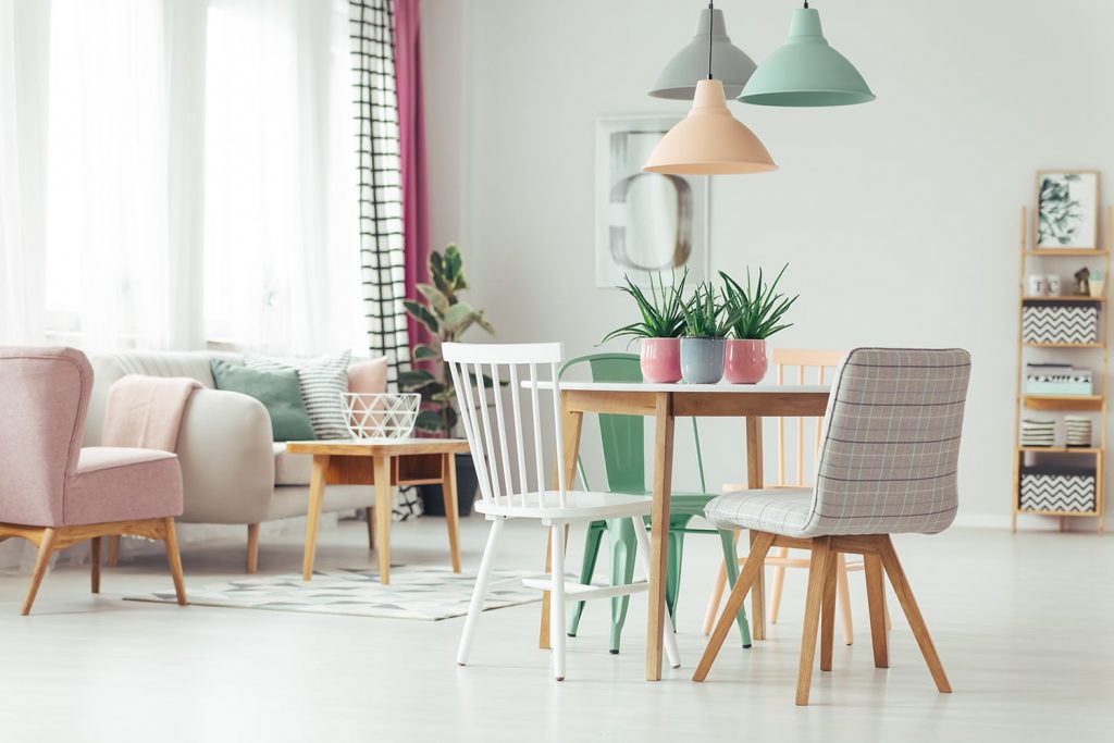 In un ambiente decorato e curato fin nei minimi particolari, è importante mantenere lo stile anche nelle sedie del soggiorno o della sala da pranzo. Una soluzione possibile è quella di affidarsi alla palette cromatica già in uso. Le sedie, dunque, andranno a richiamare il colore dominante, quello secondario oppure la tinta o le tinte d’accento (per approfondire, qui parliamo della “regola” del 60-30-10).