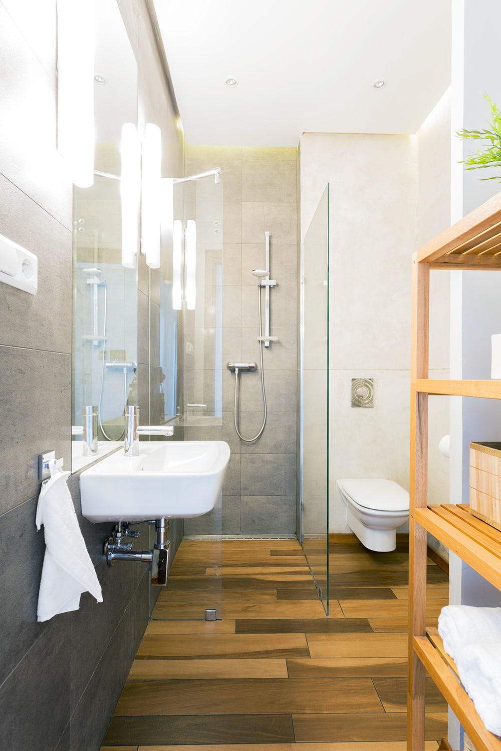 Sfruttare la verticalità come soluzione salvaspazio per un bagno piccolo