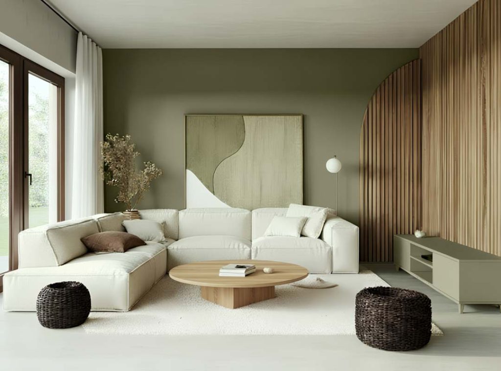 Un beige luminoso, neutro, che diffonde la luce e dona equilibrio agli spazi.