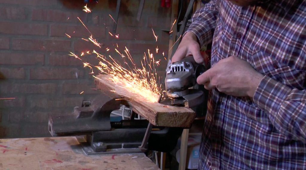 - Con la smerigliatrice tagliamo le punte dei chiodi che fuoriescono dal retro della tavola.