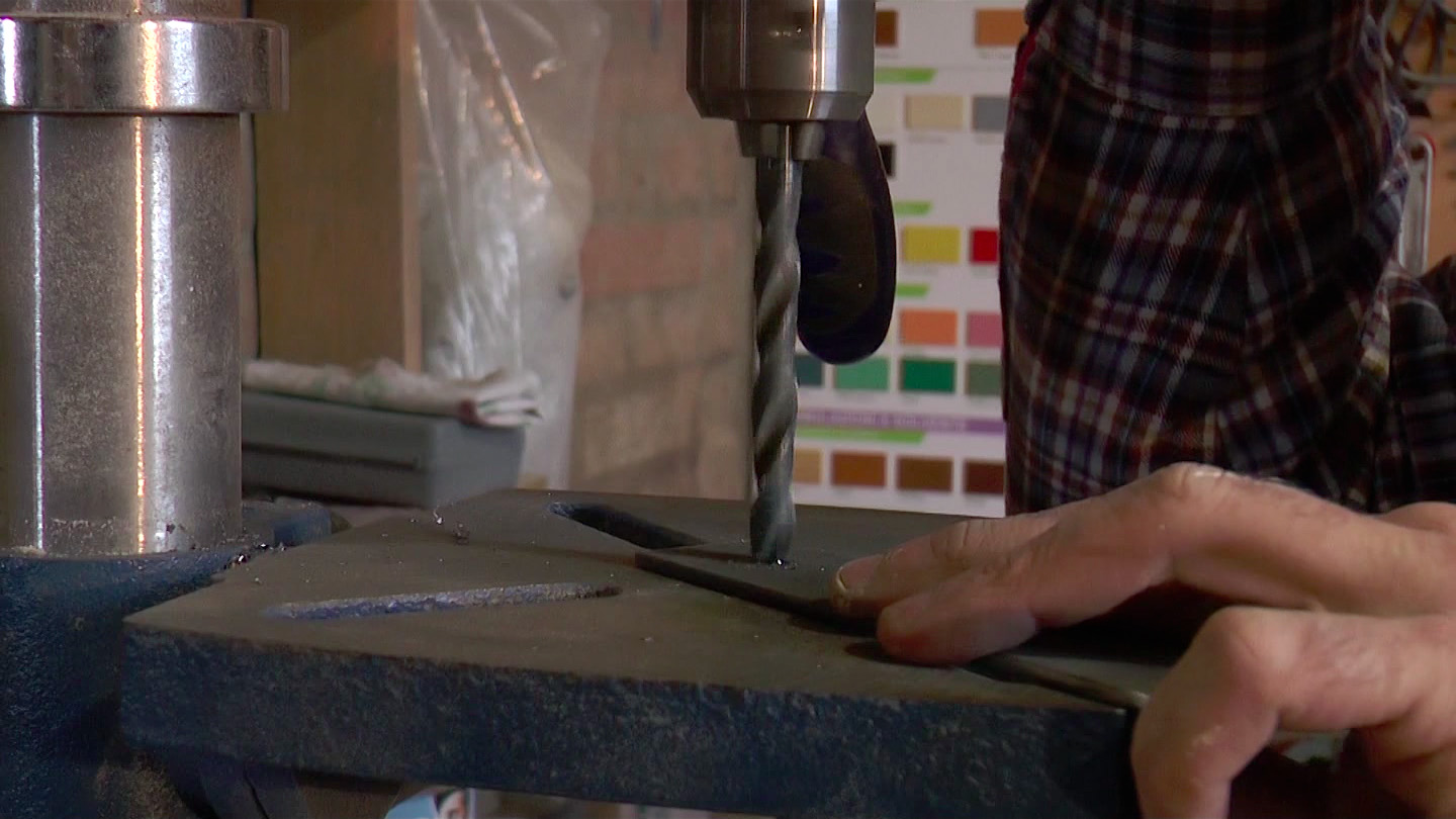 - Montiamo una punta robusta sul trapano a colonna e foriamo le piatte nei punti stabiliti ( velocità trapano: 230 giri ).