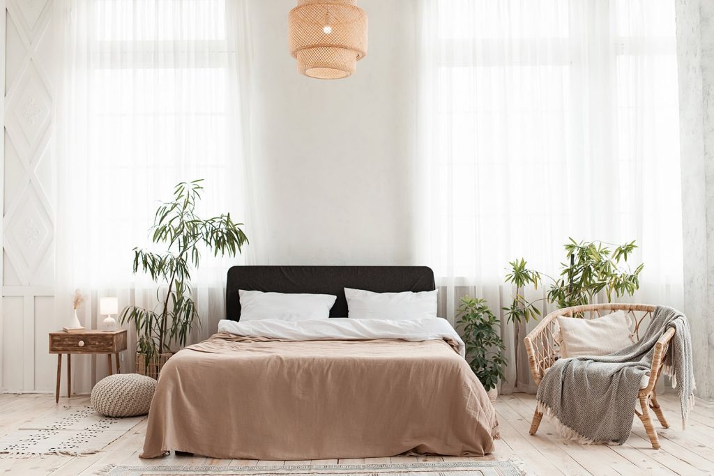 La camera può essere resa unica con un letto a baldacchino con zanzariere, elementi in vimini, cassettiere dipinte a mano, tappeti intrecciati dai motivi berberi, cuscini in macramè. E, se c’è spazio, pure un’amaca o un’altalena da soffitto.