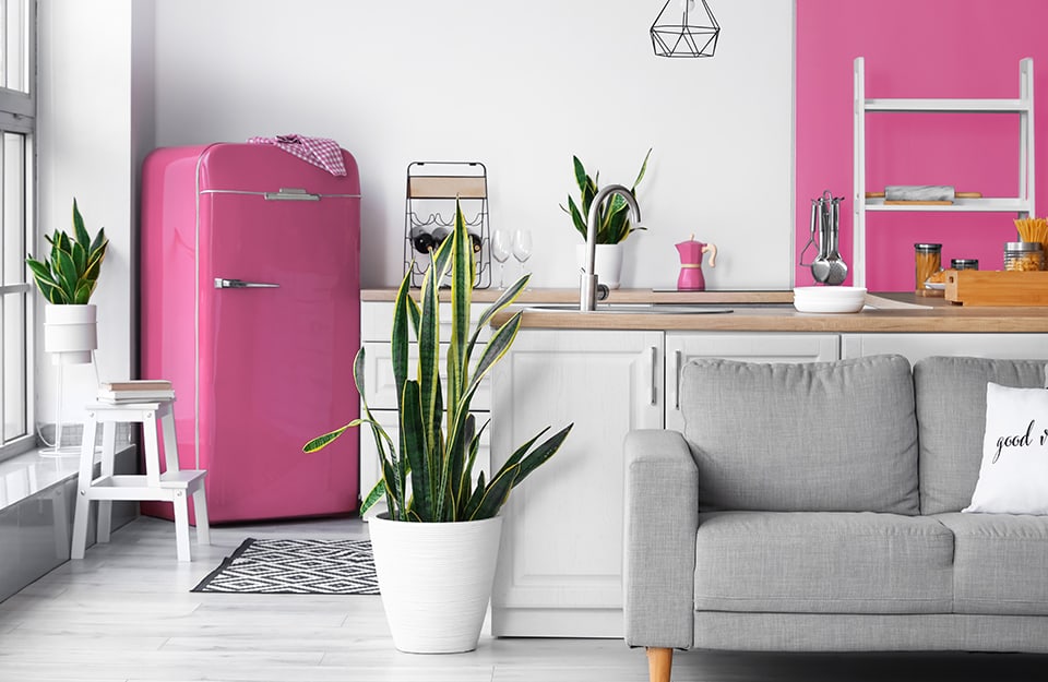 - arredi: per evitare l’effetto “casa di Barbie”, occorre puntare su pochi pezzi. Ad esempio un sofà o delle poltrone rosa con cuscini colorati. Oppure un pouf, un tappeto con colori accesi e motivi geometrici, un grande lampadario fucsia.