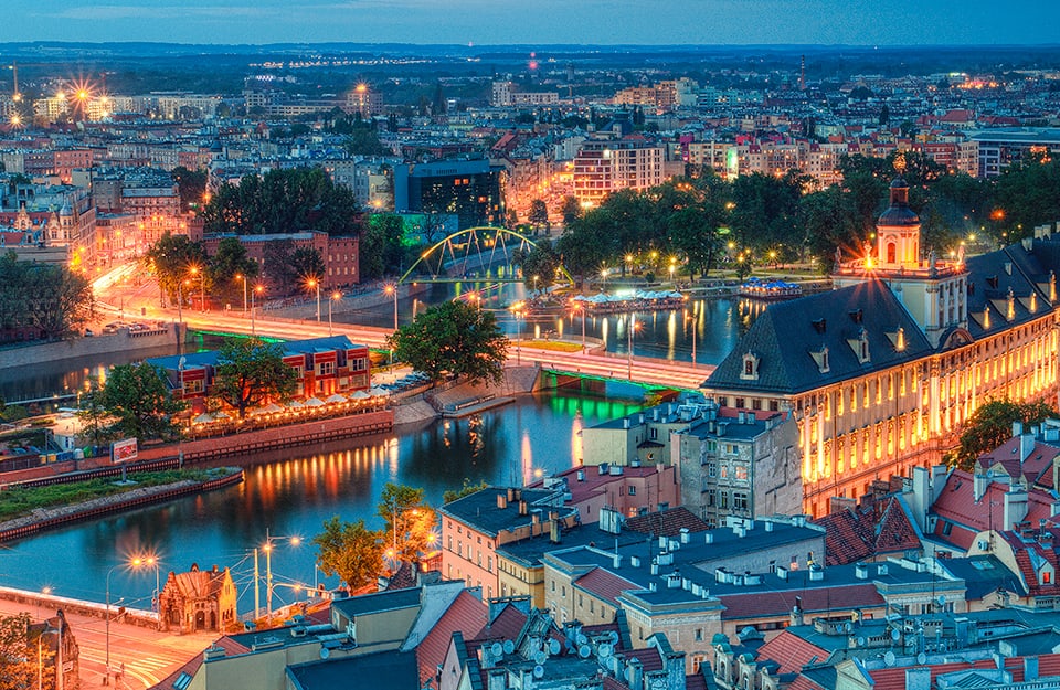 Breslavia — in polacco Wrocław — sorge lungo il corso del fiume Oder, nella parte sud-occidentale della Polonia.