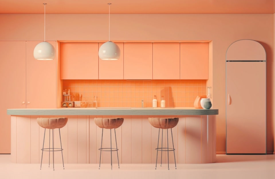 Scegli un colore avvolgente come marzapane o tartufo. Applica la vernice su tavolini, scaffali, sedute, vasi. Puoi estenderla a porzioni di parete per dare profondità. - Cucina
