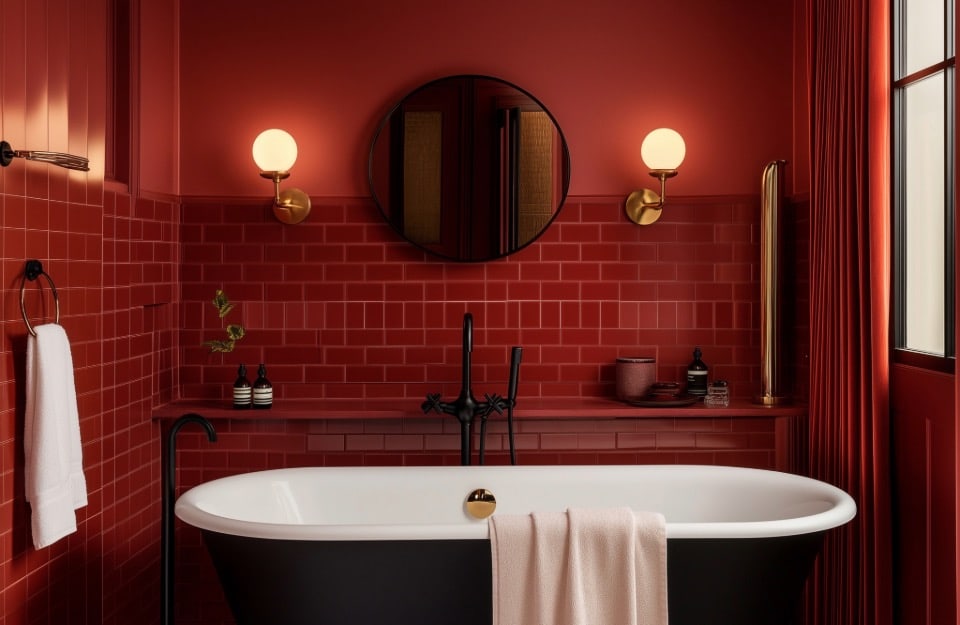 Anche in spazi ridotti il drenching funziona. Scegli colori scuri come antracite o tortora, e applicali su mobili bagno, scaffali, dettagli in legno o ceramica.