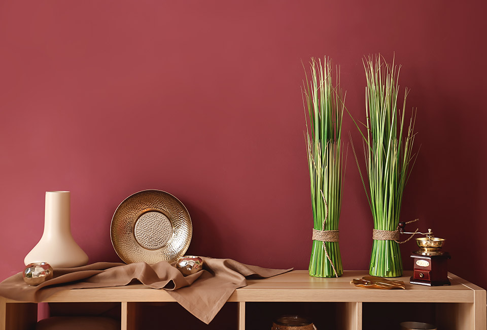 Come nel Classic Blue, anche in questo caso il contrasto con elementi metallici funziona, così come l’abbinamento con legni lasciati al naturale — ma protetti dalle finiture trasparenti all’acqua Rio Verde, sia opache che lucide, o dall’olio decorativo — oppure trattati con le vernici per effetti materici Rio Verde: in questo caso la scelta potrà cadere sui colori amarena, nocciola e vaniglia.
