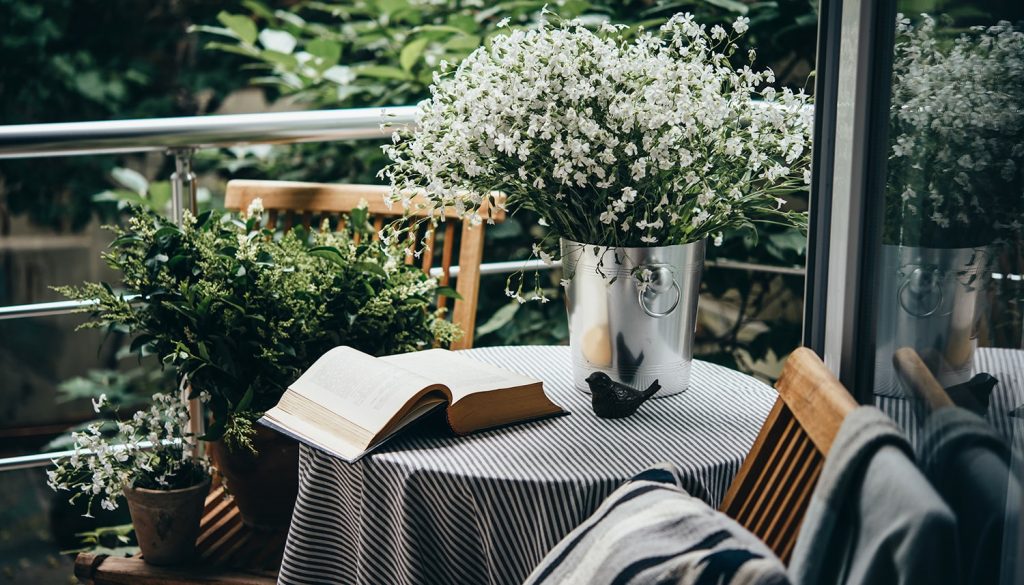 Chi ama il mare ma non ce l’ha a portata di mano può ricrearlo sul proprio balcone. La scelta degli oggetti da esporre va fatta con cura: basta poco per ottenere l’atmosfera giusta. Tessuti a righe bianche e blu, poltrone e sdraio in legno, accessori che richiamano la vita di mare come una vecchia pagaia, illustrazioni a tema, conchiglie (magari per creare una composizione), una rete da pescatore da appendere alla parete, candele bianche e, se si ha spazio, un’amaca sulla quale rilassarsi.