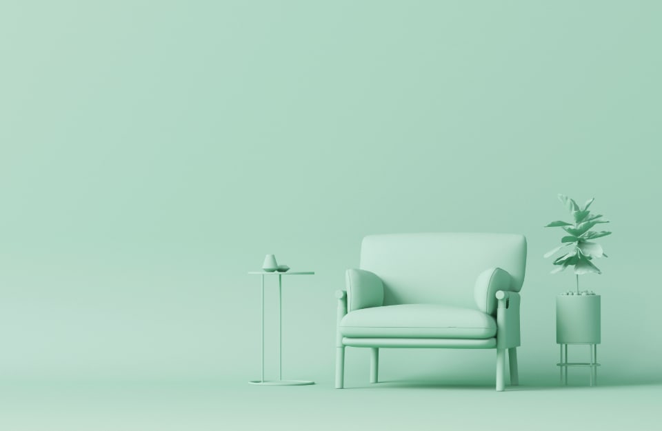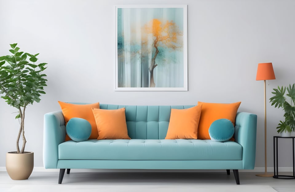 In soggiorno, il verde acqua risalta insieme a tinte come il grigio, il beige o il marrone chiaro. La sua versatilità lo rende adatto a molti stili, dai più classici ai più moderni.