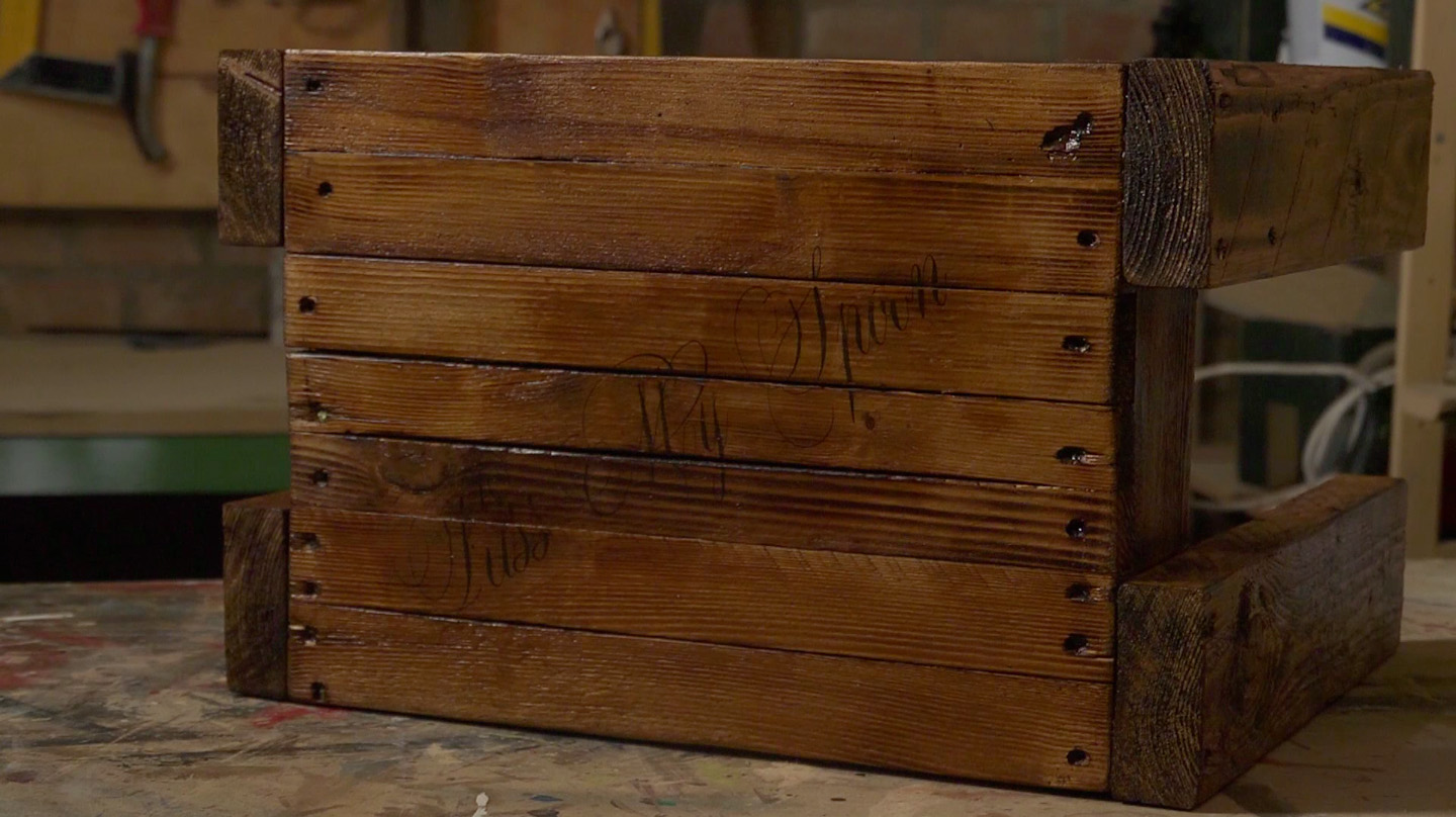 - Prendiamo il cannello a gas, accendiamolo, e passiamolo sul legno per mettere in evidenza le venature a conferire all’oggetto un aspetto più rustico (facoltativo).