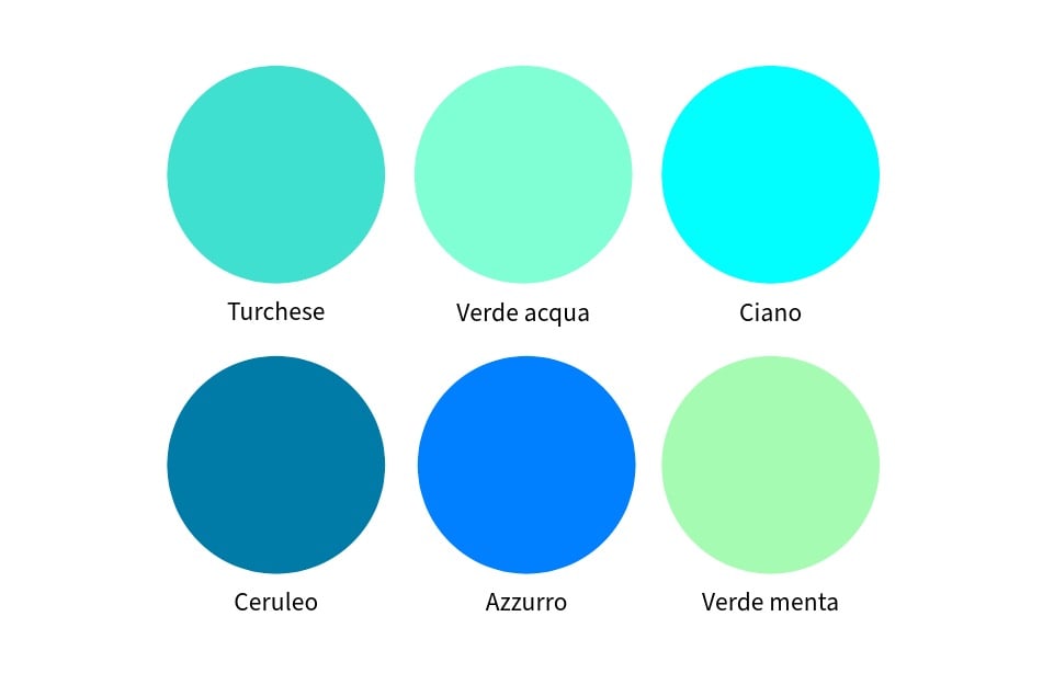 - verde acqua: è più chiaro e tende a essere più vicino al verde;