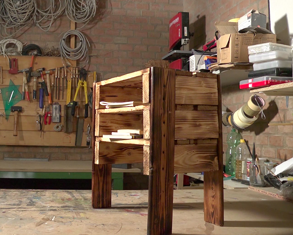 - 1 Sgabello/Comodino di recupero creativo (nel nostro caso ricavato da Pallet con effetto bruciato)