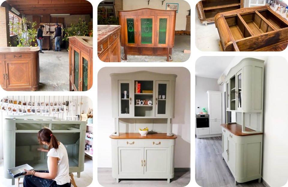 Stefano e Manuela hanno recuperato questa vecchia vetrina, ricordo della nonna di Stefano, con l’obiettivo di metterla nella loro casa nuova. Si sono rivolti a me per cambiare aspetto a questo arredo.