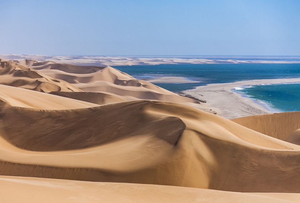 Cominciamo dall’emisfero meridionale: siamo nel sud dell’Africa, in Namibia, nella striscia di terra che affianca l’oceano Atlantico. Lì si estende il deserto di Namib, conosciuto per le sue temperature fredde causate dalla corrente del Benguela, favorite dalla sua posizione lungo la costa. Arido da oltre 80 milioni di anni, si ritiene che sia uno dei deserti più antichi del mondo. I suoi forti venti portano a incredibili tempeste di sabbia, che nel tempo sono state causa di numerosi naufragi.