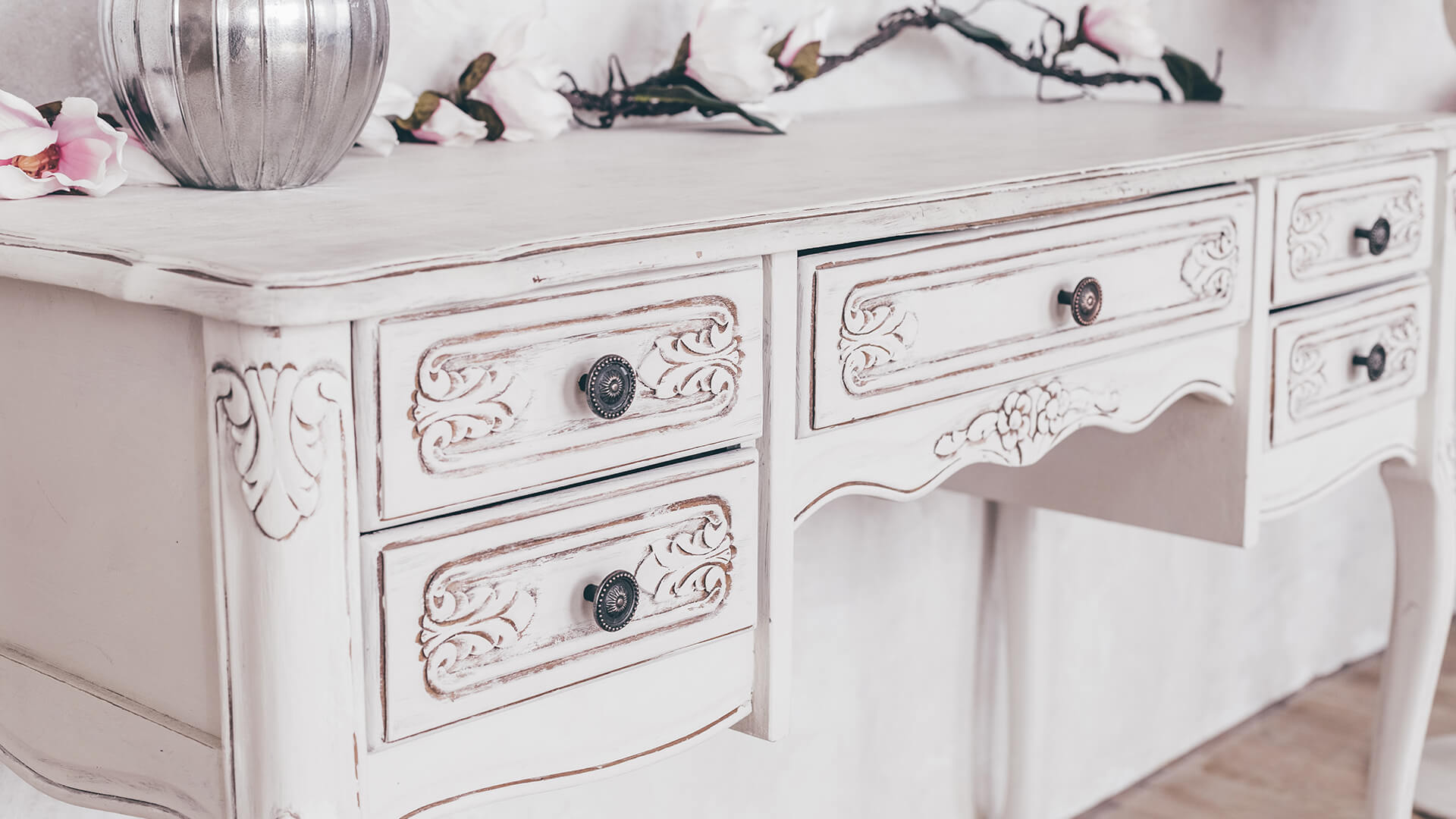 Con le vernici Vintage Prestige si possono eseguire un’infinità di effetti speciali per restaurare un mobile o decapare un mobile scuro. In questo articolo ci concentriamo su un paio di effetti molto diversi tra loro, ma che dettano due trend della moda nell’ambito della home fashion: l’effetto shabby chic e l’effetto etnico.