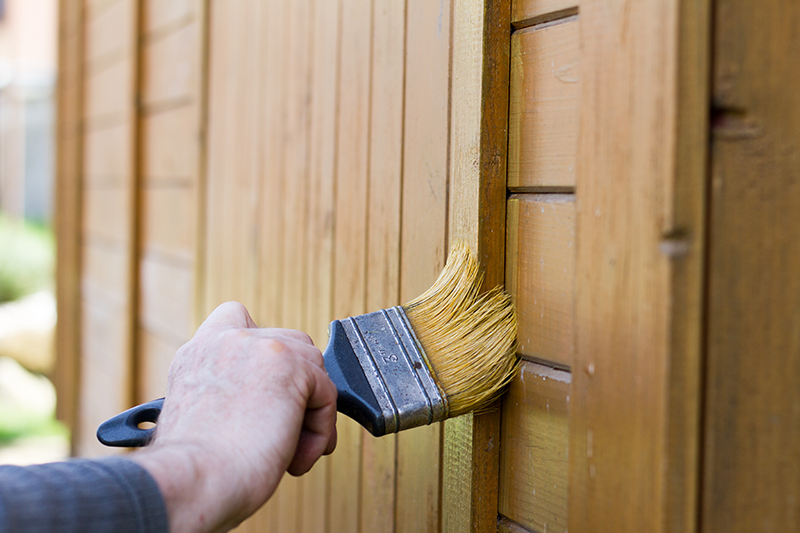 - Los acabados para madera de exterior revisten la madera, bloqueando la penetración del agua y alargando la vida del objeto de madera