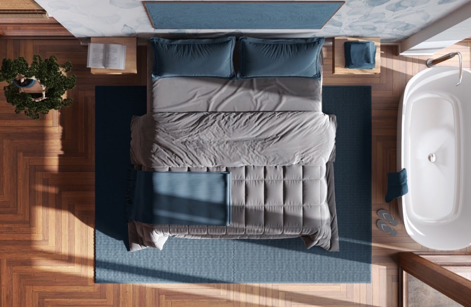 - Tonos naturales: los tonos beige, topo, marrón claro y arena son tonos neutros cálidos que combinan bien con el azul ballena, equilibrando su componente frío, para crear ambientes sofisticados a la vez que acogedores.