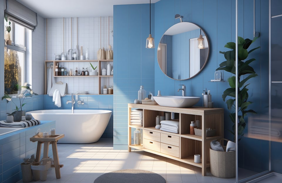 Por su discreta presencia, el azul fuerza aérea puede utilizarse en cualquier habitación y de cualquier forma: como color primario o como color secundario o de acento. En las paredes, se puede utilizar casi en cualquier sitio, desde el recibidor hasta el comedor, desde el salón hasta el cuarto de baño. Sin embargo, es mejor no exagerar y dejar al menos una o dos paredes blancas o en un color neutro. En el salón se puede utilizar en sofás, sillones y butacas, así como en alfombras, cortinas y cojines, con diferentes texturas, para dar profundidad y riqueza visual a la estancia. Para el comedor: mantel, cortinas y, posiblemente, consolas y armarios. En la cocina: paredes o muebles, quizá en una cocina bicolor. En el cuarto: paredes y ropa de cama. Para el cuarto de baño: azulejos, telas y/o muebles.