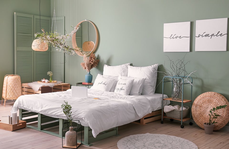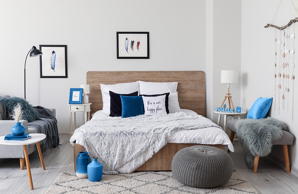 Si può optare anche per tinte come il verde menta, l’acquamarina, la carta da zucchero, il grigio azzurro, soprattutto se abbinati al bianco per la biancheria da letto.