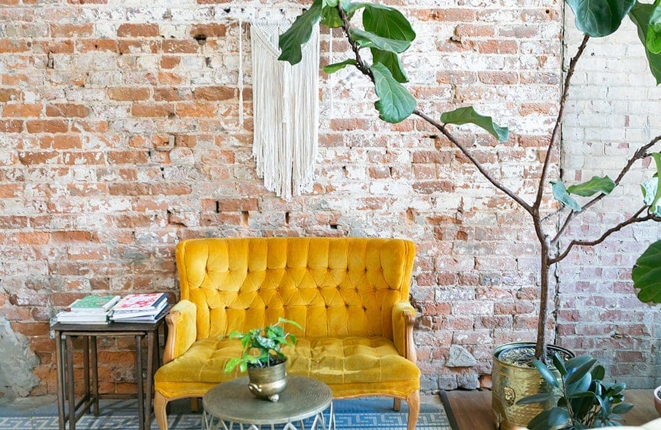 Davanti a un muro a vista e insieme ad arredi vintage, diventa il protagonista di una stanza.