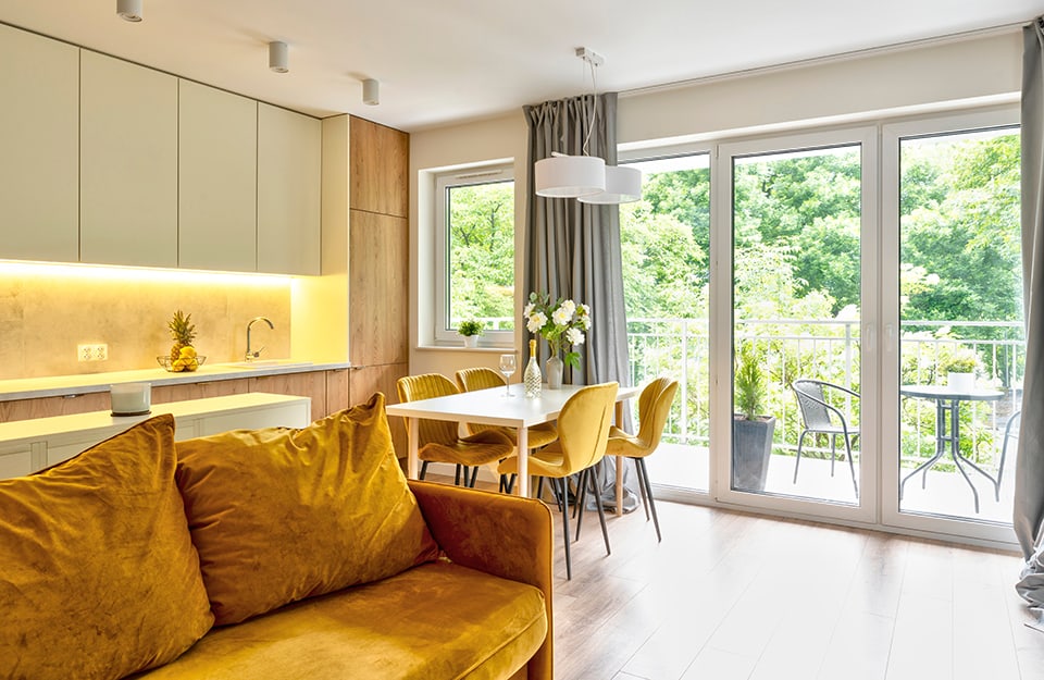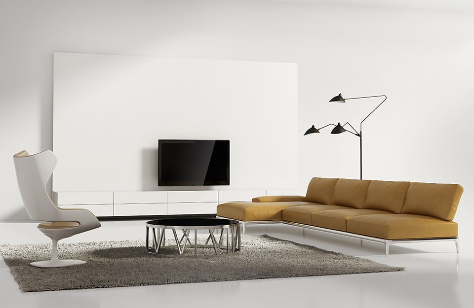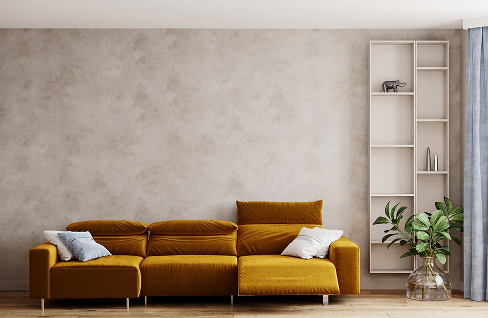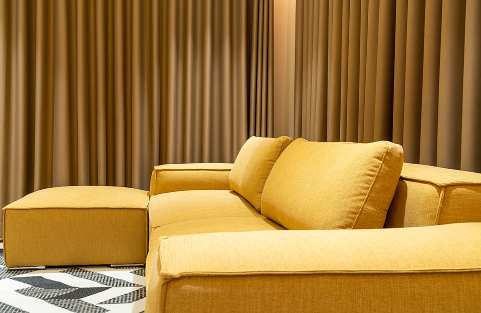 Nonostante i richiami al vintage e agli anni ’70, il divano senape è talmente versatile da adattarsi anche a un arredamento moderno e ultra-minimale.