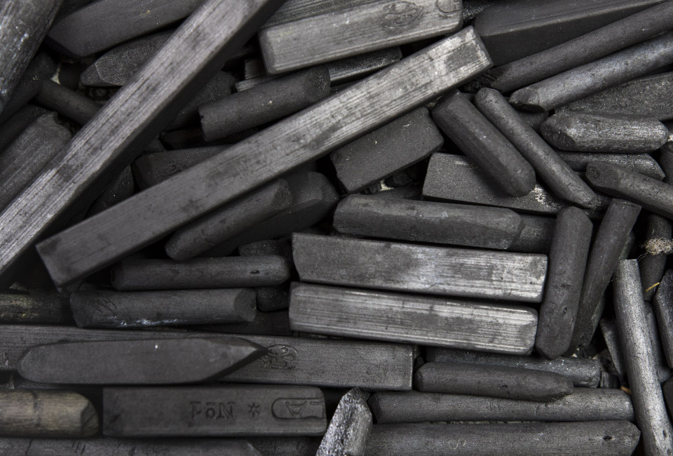 Il carbone è tra i materiali più antichi. La sua formazione risale circa a 320 milioni di anni fa. Da allora, è l’ideale per conservare gli oggetti. E poi penso ai minatori, che grazie al carbone sopravvivono e mantengono le famiglie: ho letto da qualche parte di tutte le canzoni hanno inventato, tramandate di generazione in generazione, ispirate alla loro vita vissuta in gran parte senza luce del sole. Sono figlia di un architetto, le matite a carboncino sono il mio pane quotidiano. Quanti disegni ho fatto nella mia stanza, con il carboncino rubato di nascosto a mio papà. Paesaggi naturali, alberi e montagne realizzati con la tecnica del chiaroscuro realizzata grazie a queste matite. Ritratti, barche o nature morte. Ricordo perfettamente l’odore di queste matite, a volte più dolce, quasi simile a quello della Befana, altre più acre, come quello che alimentava la stufa.