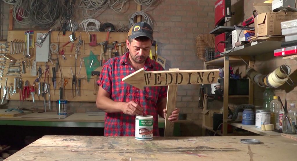 - Prendiamo il cannello a gas e passiamolo con attenzione sull’insegna per conferirle un effetto anticato.