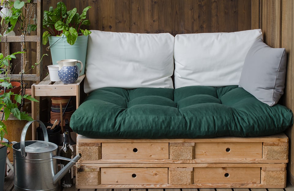 Per quanto riguarda gli spazi esterni, un salotto in giardino, sul balcone o in terrazza si può sempre costruire con poco. Ad esempio riutilizzando i pallet.