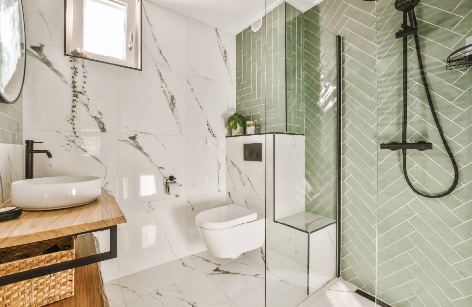 Una scelta originale è mixare piastrelle a effetto marmo con altre monocromatiche, magari in pattern non troppo ripetitivi.