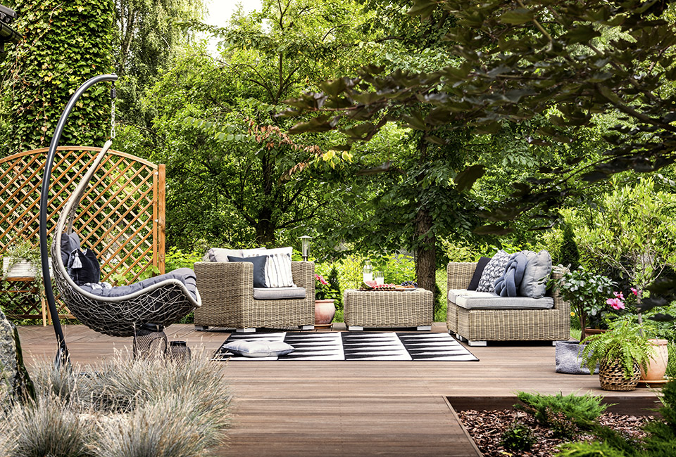 Per rendere più confortevoli i momenti di relax all’aria aperta, quest’anno sono di tendenza le sedute sospese come amache, poltrone o lettini. Ne esistono di diverse misure, si consiglia di comprarne uno che leghi all’arredamento già presente ricordando sempre di giocare con i contrasti di colore e/o di materiale.