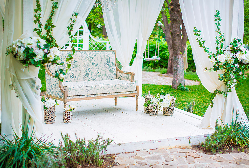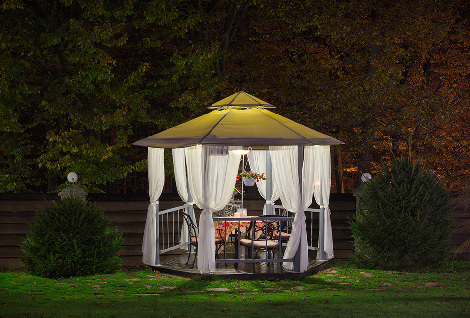 Un gazebo non è solo la struttura in sé, ma anche arredi ed elementi decorativi.