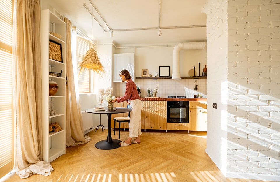 Anche se questo stile predilige i materiali organici, dettagli in ottone, rame o ferro battuto possono essere inseriti per dare un tocco sofisticato e armonioso.