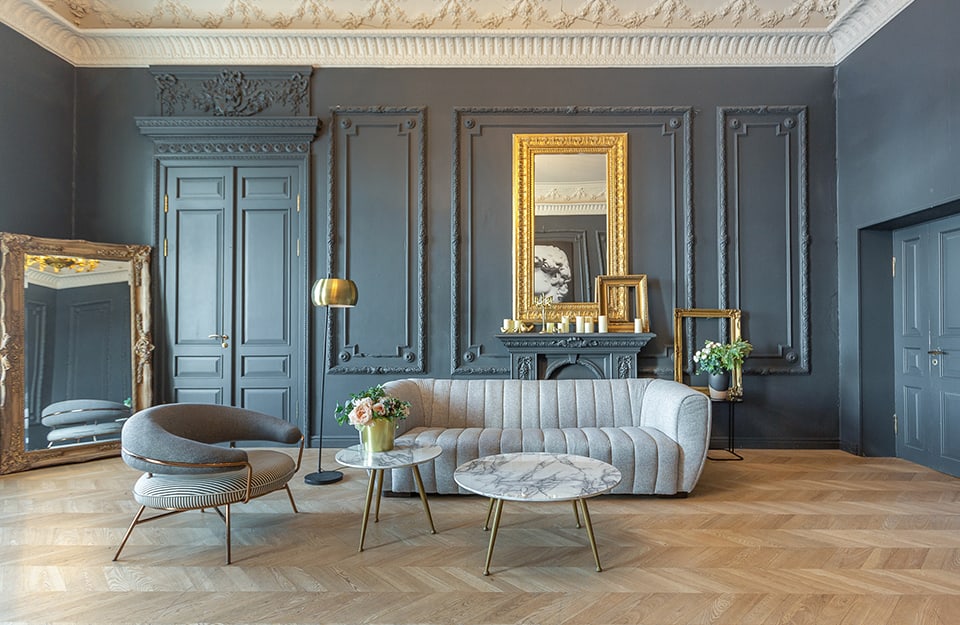 Per le pareti si può puntare su stucchi e cornici.
