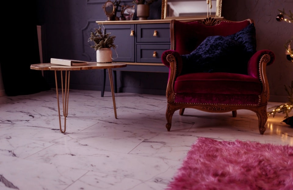 - Marmo: ampiamente utilizzato per tavoli, pavimenti, rivestimenti e dettagli architettonici.