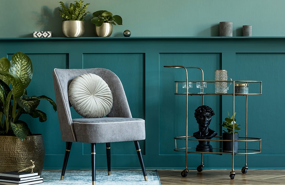 - toni metallici come l’oro e l’ottone: le tinte gialle metallizzate danno un tocco lussuoso. Consigliamo di usare i prodotti della linea di vernici metallizzate Golden Prestige di Rio Verde;