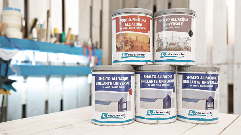 - Smalti all’acqua brillanti: RL 6560 (blu genziana), RL 6460 (rosso fuoco), RL 6160 (bianco alpino) – fondo finitura all’acqua RP 4060 (opaco trasparente), smalto all’acqua universale RL 2040 (nero)