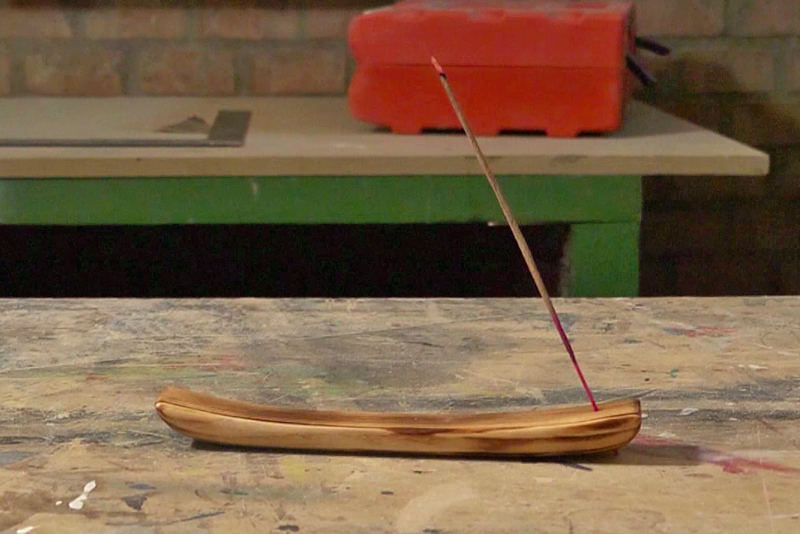 - Prendiamo il cannello a gas, accendiamolo e passiamo velocemente la fiamma sulla superficie del portaincenso; questa operazione conferirà al legno un aspetto più rustico.