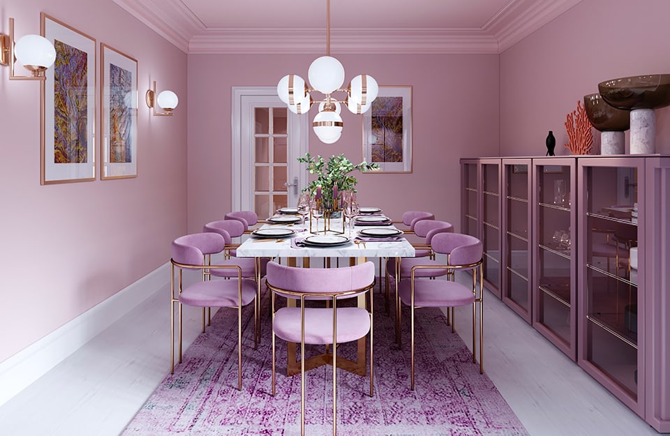 Questo lavanda digitale si sposa perfettamente con i toni del rosa e del bianco, con accenti metallici anche questi tendenti al rosato.