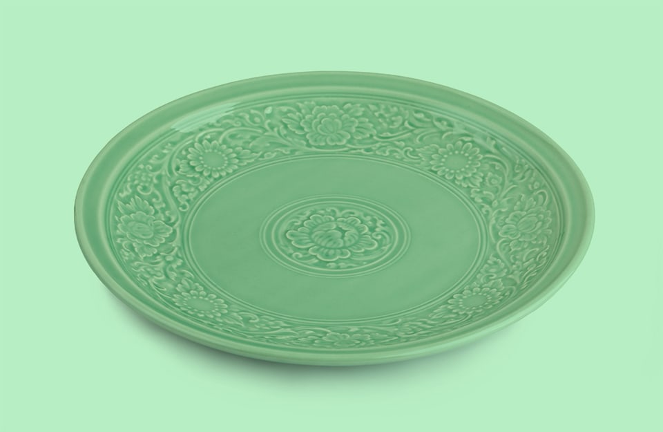 Celadon, in francese, significa “verde pallido” ed è la tinta caratteristica del rivestimento vetroso di certe ceramiche orientali — specialmente coreane e cinesi — chiamate allo stesso modo. La storia che lega tali manufatti al termine francese è curiosa. Nel ‘600 uscì in Francia un romanzo pastorale intitolato L’Astrea, scritto da Honoré d’Urfé. Uno dei personaggi si chiamava appunto Celadon per via delle sue vesti color verde pallido. Nello stesso periodo, nel paese iniziarono ad andare di moda le ceramiche d’oriente, e quelle della stessa tonalità degli abiti del personaggio presero il suo nome.