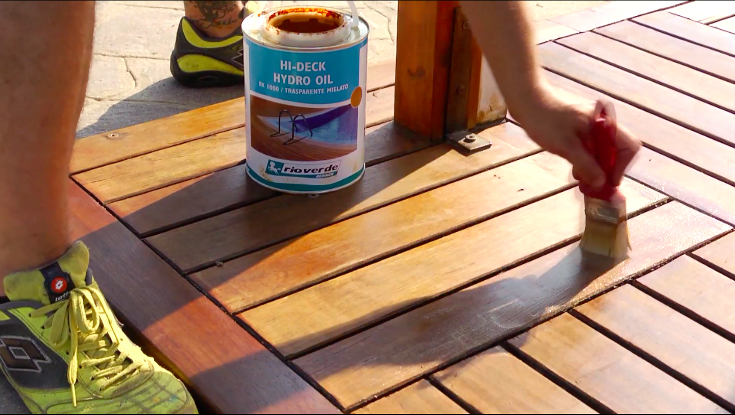 • Prendiamo una latta di Hy-Deck Hydro Oil e ripetiamo l’operazione di verniciatura sopra descritta.
