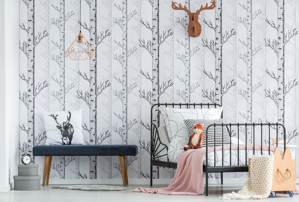 Un lato della cameretta decorato con carta da parati, per esempio. Ovviamente, il consiglio è quello di evitare carte da parati con fantasie troppo eccentriche, che potrebbero impedire al bambino di rilassarsi. Piuttosto, perché non puntare su una carta sui toni dei beige? Stelle beige su fondo crema, per esempio.