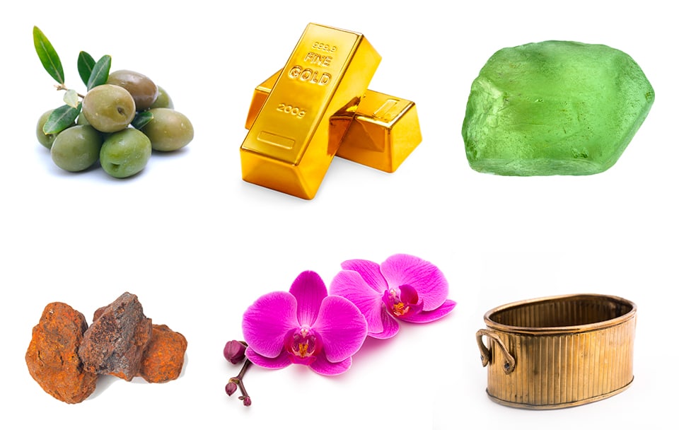 Il minerale detto olivina è composto di forsterite e fayalite. Prende il nome dal suo peculiare colore, che ricorda quello di un’oliva, e a sua volta dà il nome a una tonalità, corrispondente a un verde oliva chiaro.