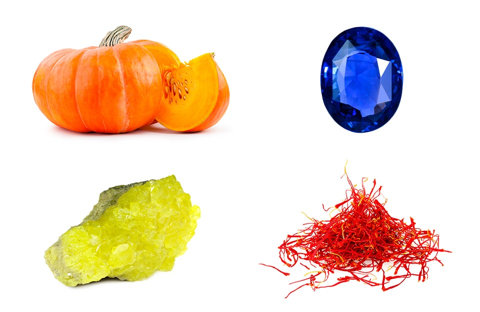 Il color zafferano prende il nome dall’omonima spezia (nome scientifico Crocus sativus) ed è un giallo oro. Gli stimmi rossi della pianta da cui si ricava lo zafferano conferiscono il caratteristico giallo alle pietanze per via della presenza della crocina, un carotenoide.