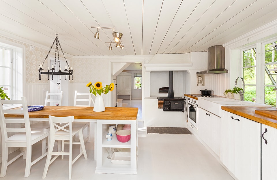 Più rustico e country, rimanda appunto alla naturale semplicità delle case di campagna. Qui il bianco lascia talvolta la parte del protagonista al colore naturale del legno.