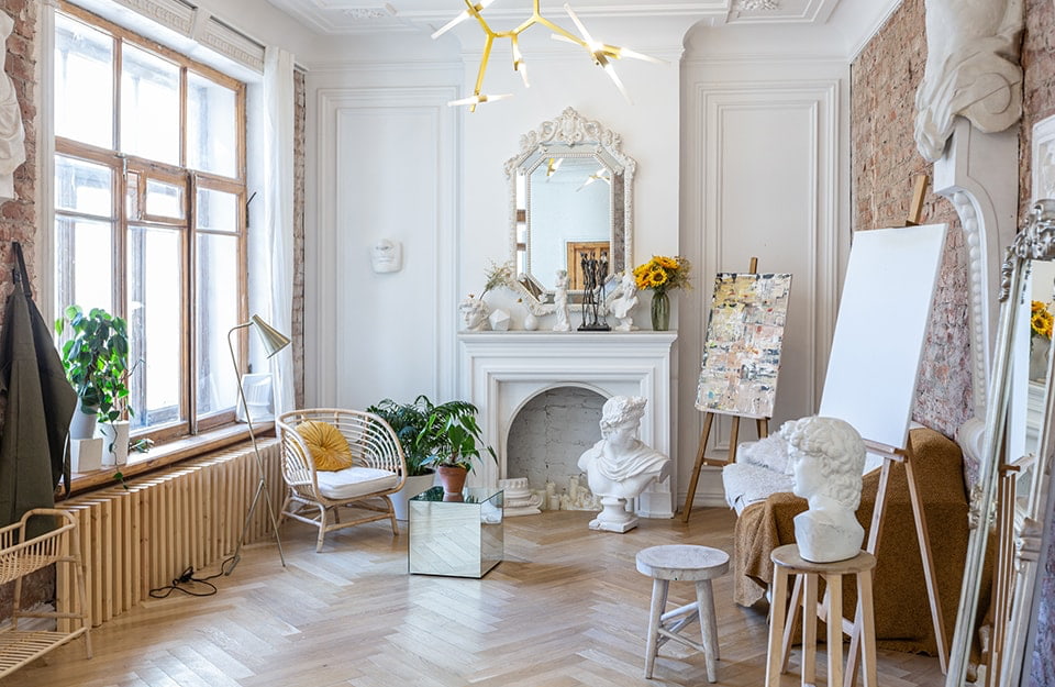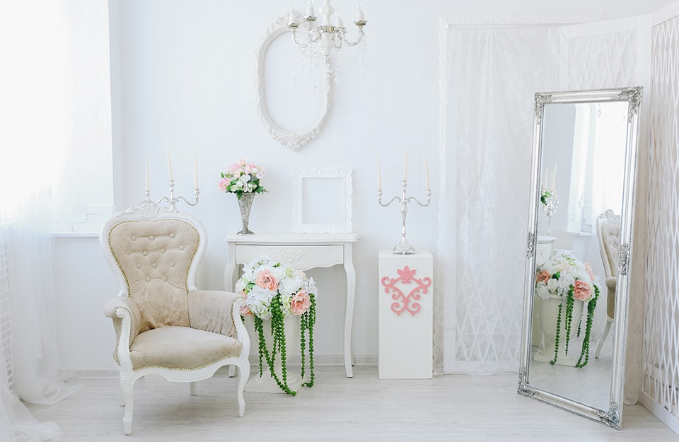 Si ispira allo stile gustaviano tipico della Svezia di fine ‘700. Gustavo III regnò infatti dal 1771 al 1792 e fu un grande collezionista d’arte. L’odierna reintepretazione shabby predilige i lampadari a candelabro, grandi specchi con cornici metalliche, meglio se dorate. E poi bianco totale, o quasi, con accenti pure dorati. Le pareti e i soffitti saranno decorati con cornici più o meno elaborate. Il pavimento, chiaro, sarà preferibilmente un parquet. In generale, l’ambiente dovrà essere molto luminoso.