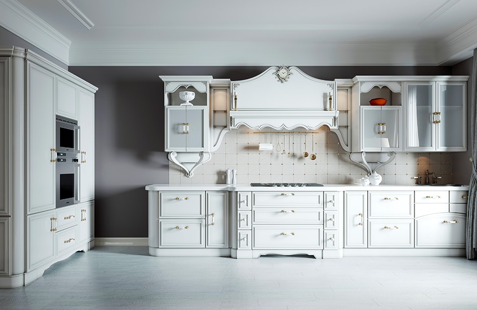 Una cucina nuova ma con linee e decorazioni di chiara ispirazione shabby chic.