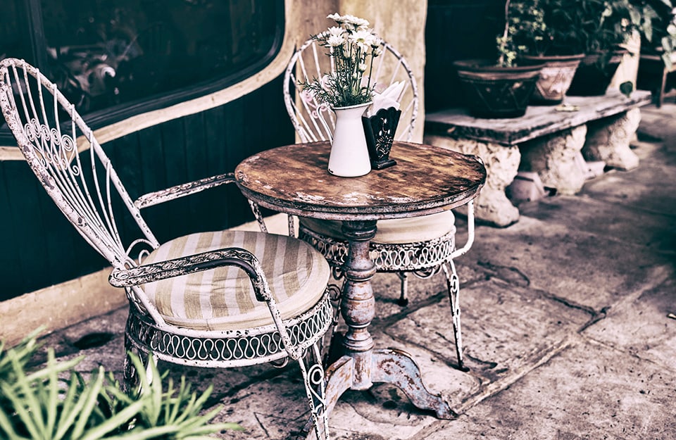 Non solo per interni, lo stile shabby chic si presta anche per il giardino o la terrazza.