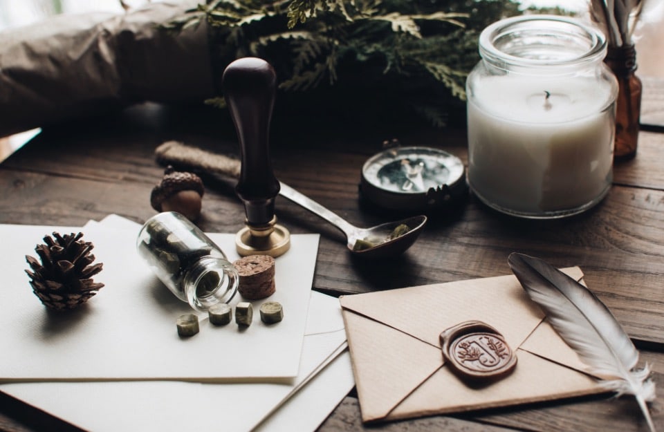 - kit di scrittura a mano, con calamai, boccette d’inchiostro e ceralacca;