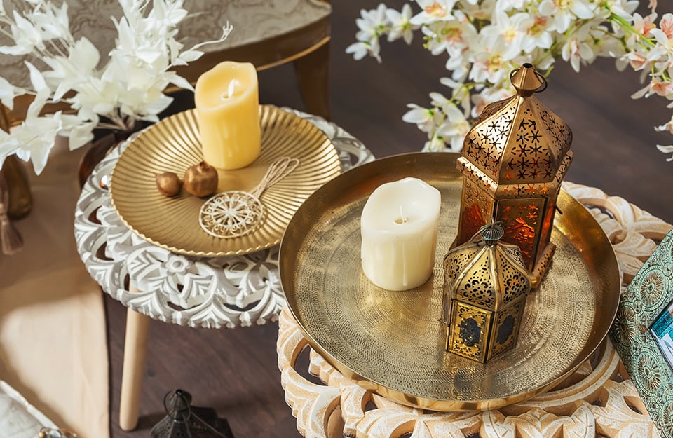 A volte bastano pochi pezzi per creare un angolino esotico in casa, come nella piccola area arabeggiante mostrata qui sopra. Richiama il Marocco attraverso lampade, piatti e candele profumate.